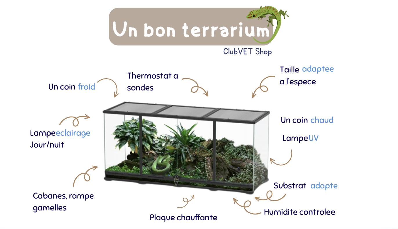 • Contrôler l’exposition aux UVB avec des lampes de qualité et une température ambiante adaptée.